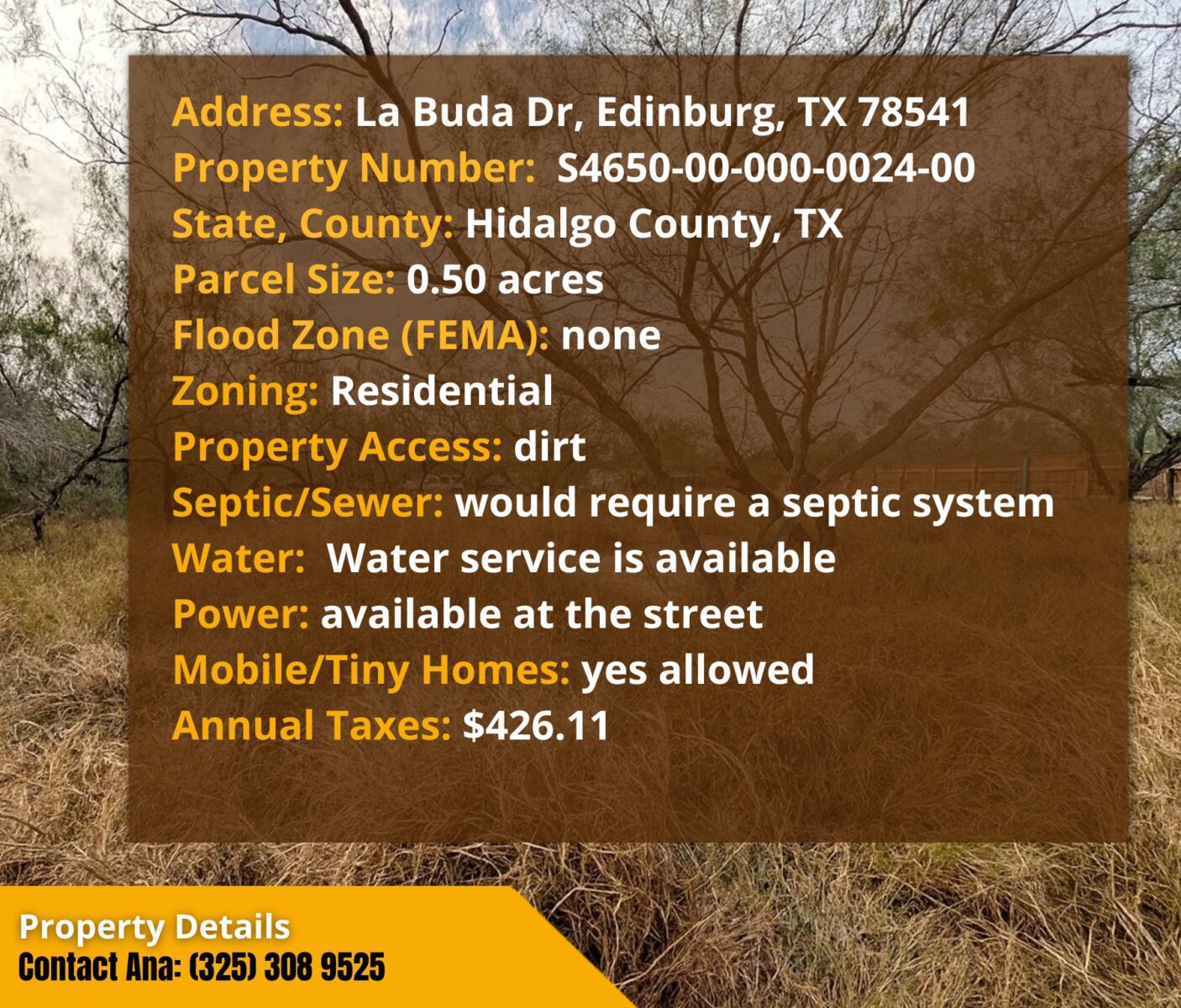 Address: La Buda Dr, Edinburg, TX 78541
